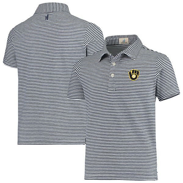 Youth Johnnie O Navy Milwaukee Brewers Nelly Striped Polo
